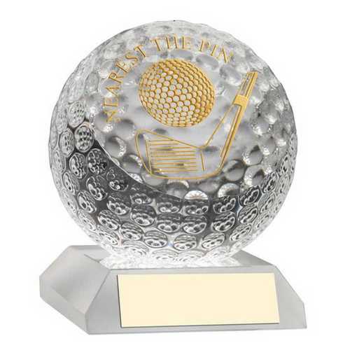 Clear Glass Golf Ball With Plate Nearest The Pin - 3.75in