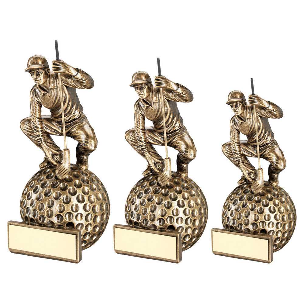Brz|gold Crouching Golfer On Ball Base With Plate - 7.75in