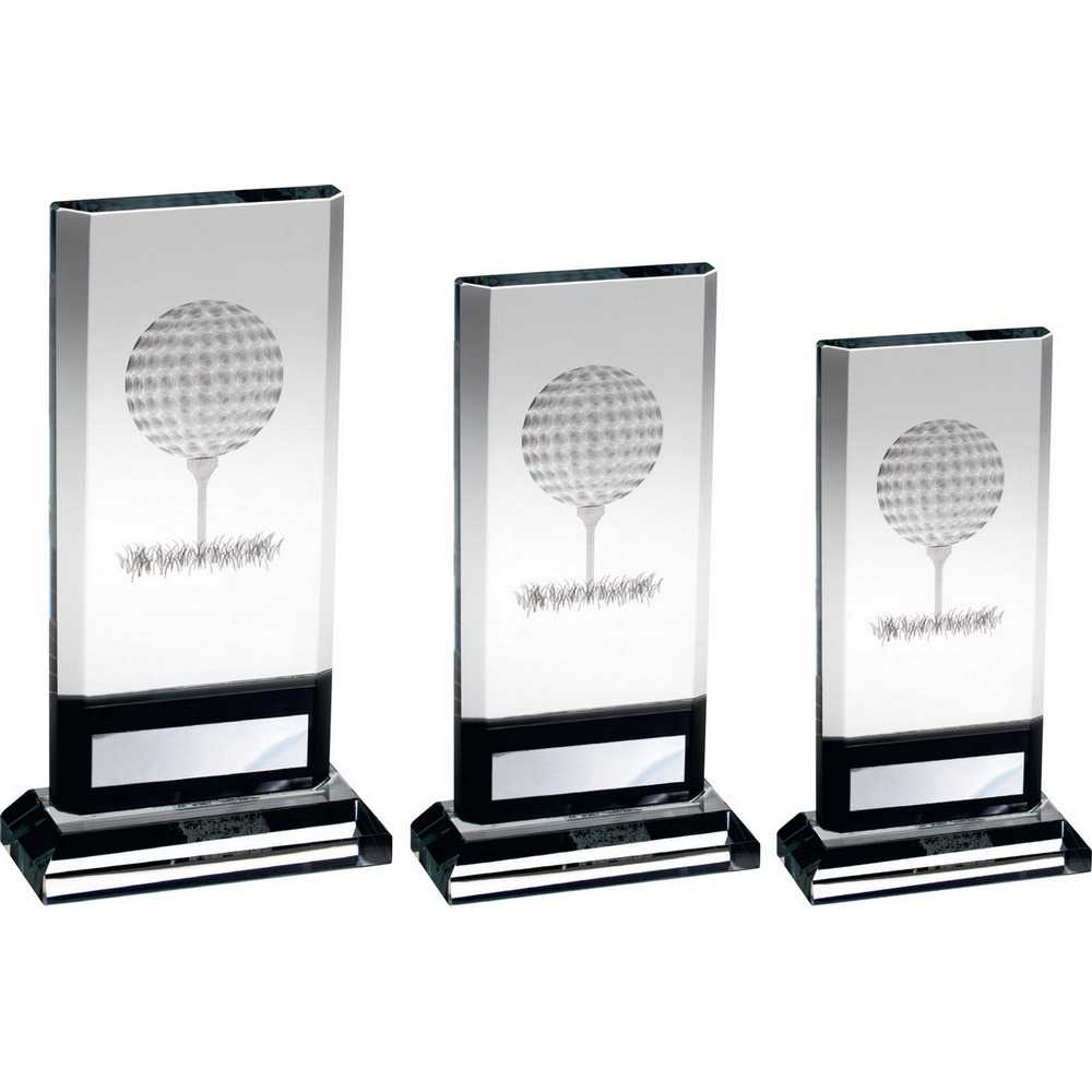 Clear|black Glass Plaque With Lasered Golf Image And Plate (15mm Thick) - 7.5in