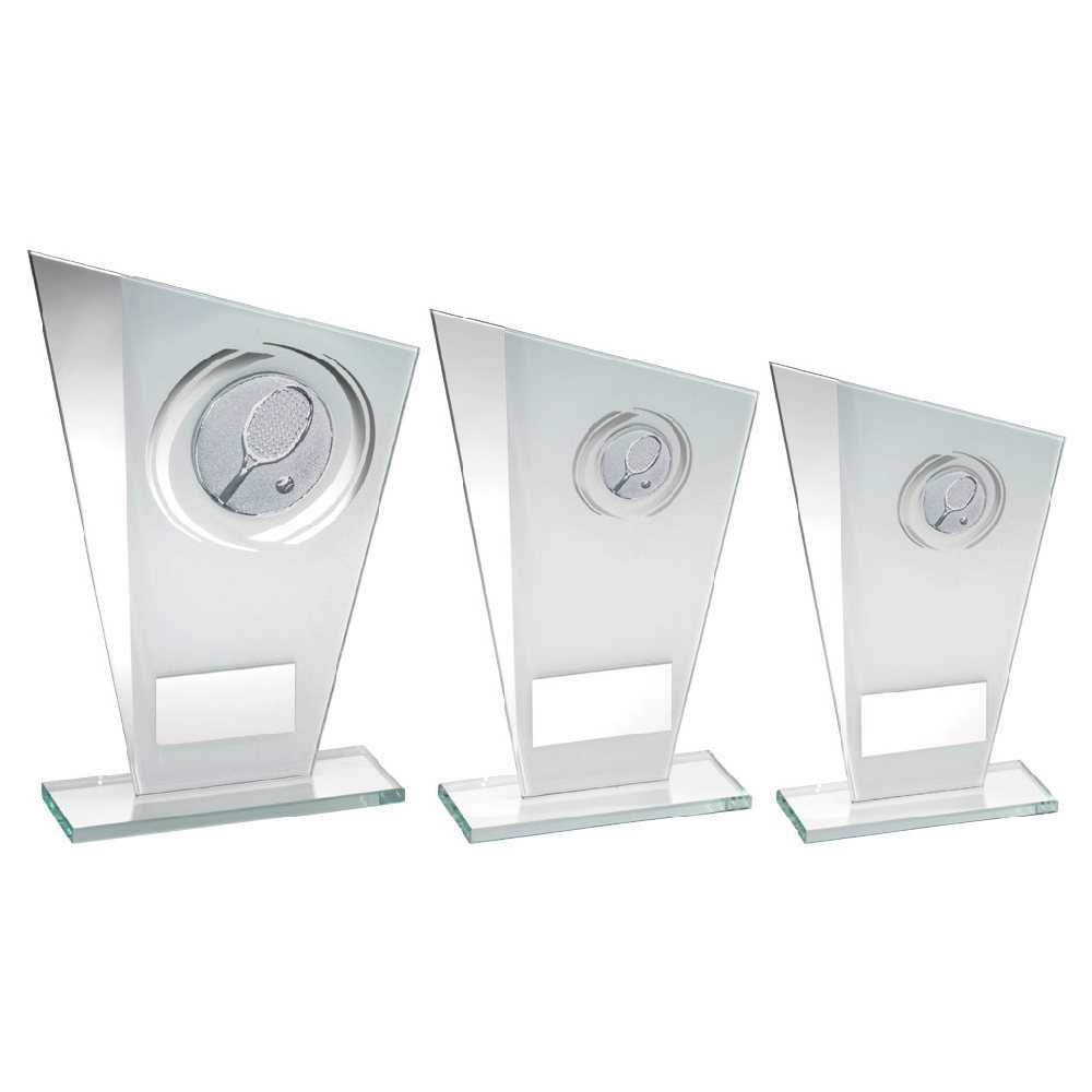 White|silver Printed Glass Plaque With Tennis Insert And Plate - 8in