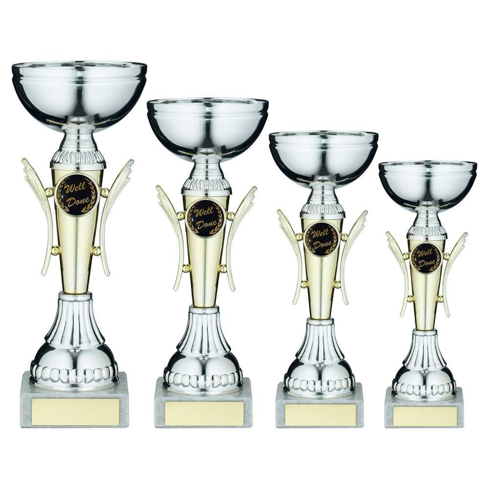 Silver|gold Winged Trophy Cup With Plate (1in Centre) - 8.25in