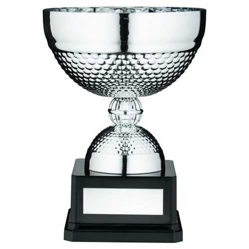Silver Dimple Bowl Trophy With Plate - 8.75in