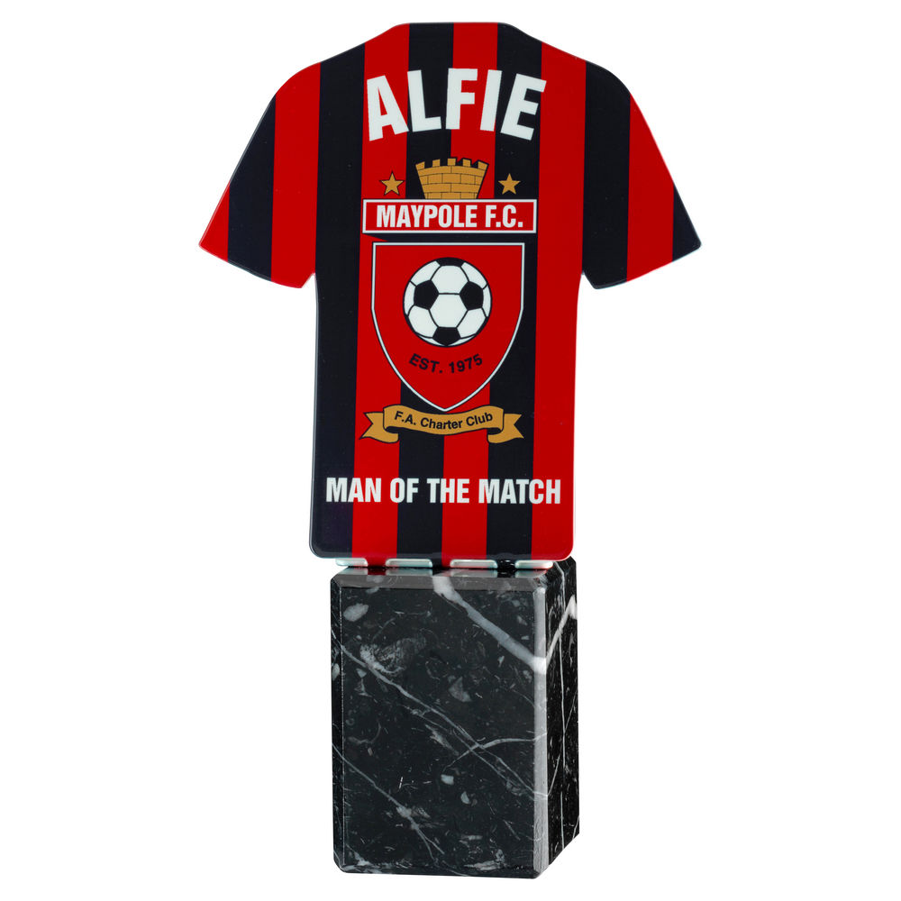 White Sublimation Shirt Plaque On Black Marble Base - 8.25in