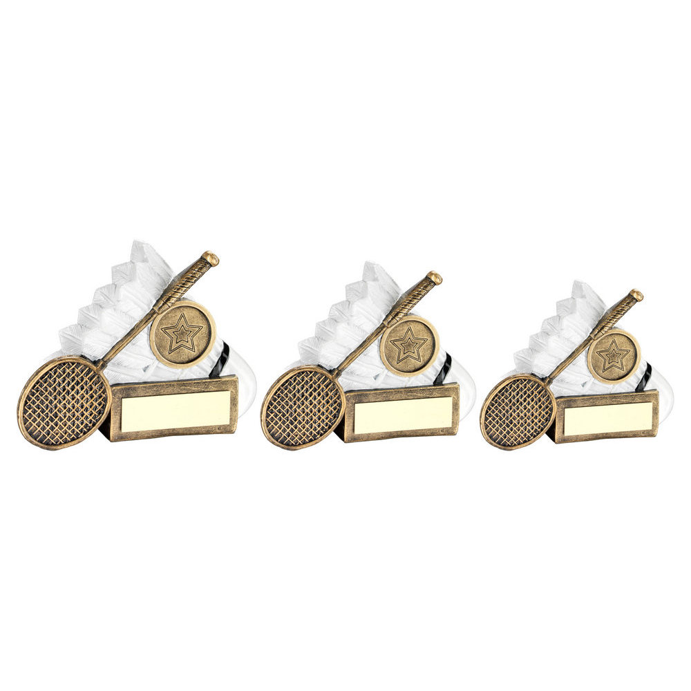 Brz|white Badminton Shuttle And Racket Flatback With Plate (1in Cen) - 2.75"
