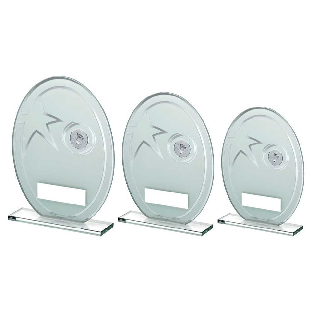 White|silver Printed Glass Oval With Badminton Insert And Plate - 8in