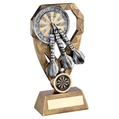 Brz|pew|gold Darts With Dartboard On Diamond With Plate (1in Centre) - 6in
