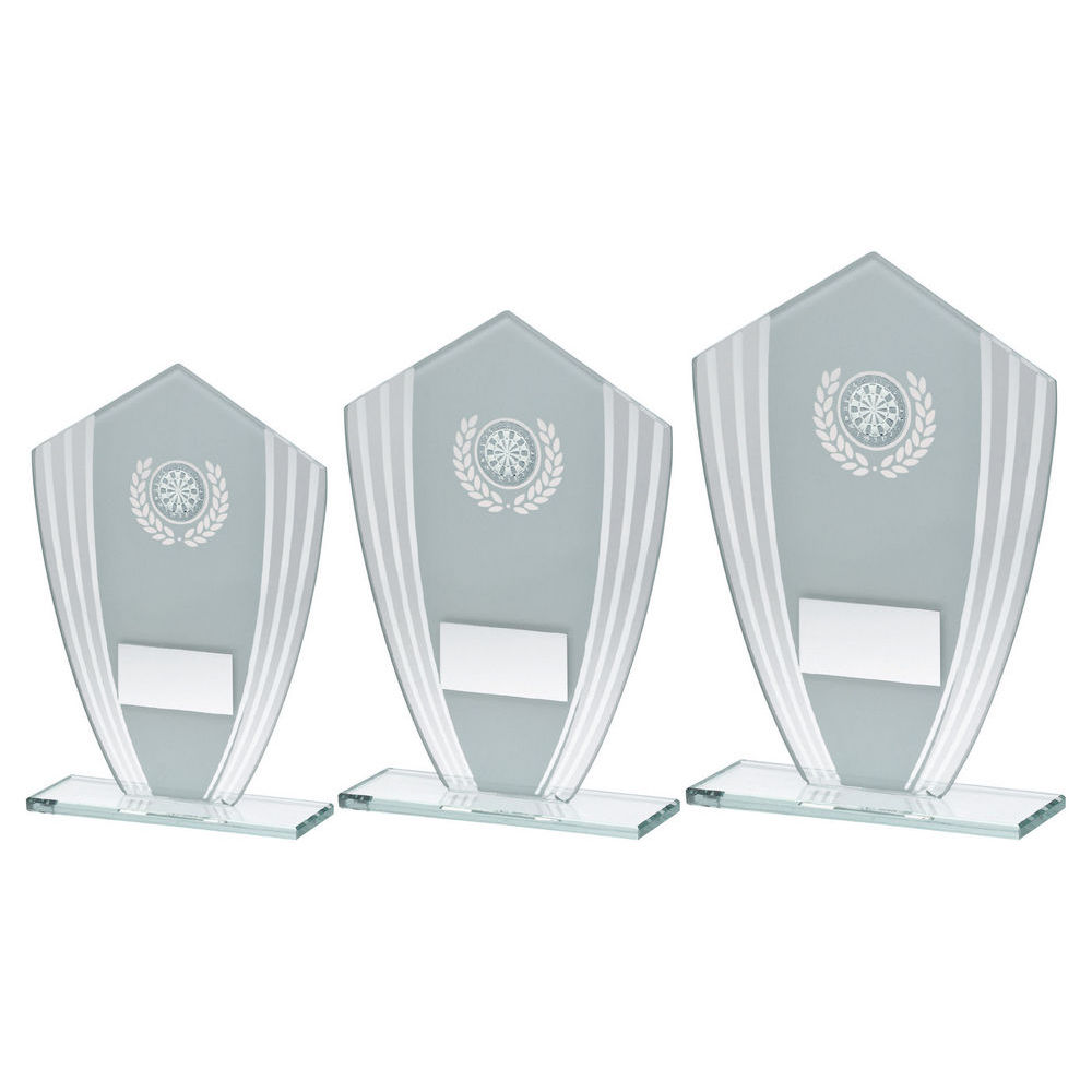 White|silver Glass Shield Plaque With Darts Insert & Plate - 8in