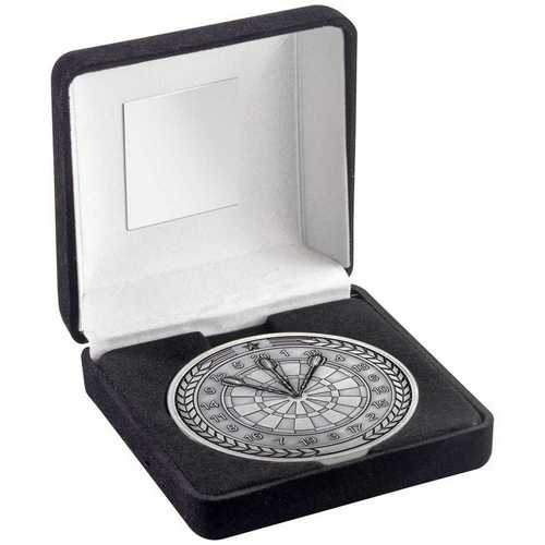 Black Velvet Box And 70mm Medallion Darts Trophy Antique Silver - 4in