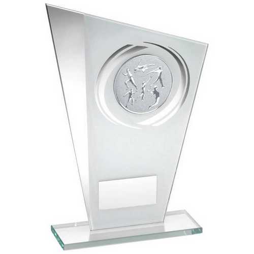 White|silver Printed Glass Plaque With Multi Athletics Insert And Plate - 6.5in