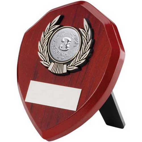 Rosewood Shield And Silver Trim Assembled Trophy (1in Centre) - 4in