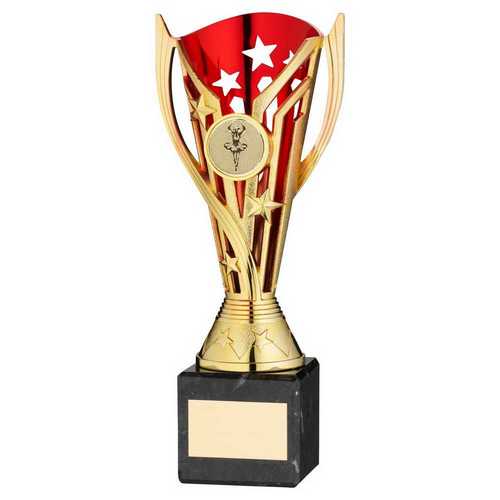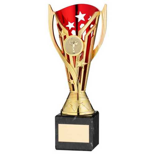 Gold|red Plastic Flash Cup On Black Marble Assembled Trophy (1" Cen) - 9in