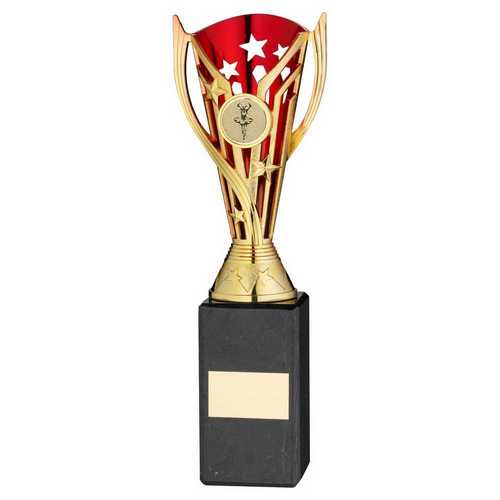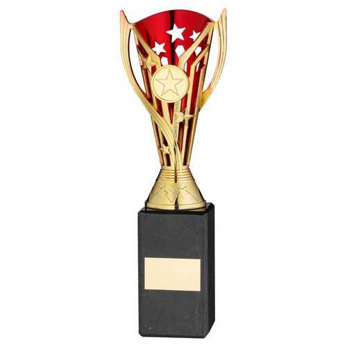 Gold|red Plastic Flash Cup On Black Marble Assembled Trophy (1" Cen) - 9in