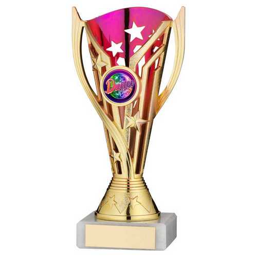 Gold|purple Plastic Flash Cup Assembled On Marble (1in Cen) - 7in