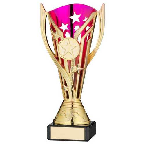 Gold|purple Plastic Flash Cup On Blk Marble Assembled Trophy (1" Cen) - 9in
