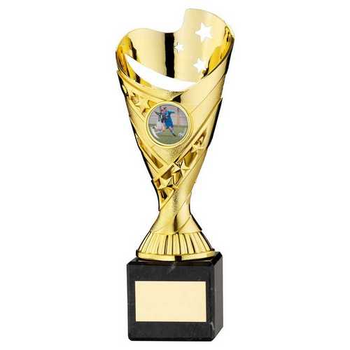 Gold Plastic Sabre Cup On Black Marble Assembled Trophy (1" Cen) - 9in