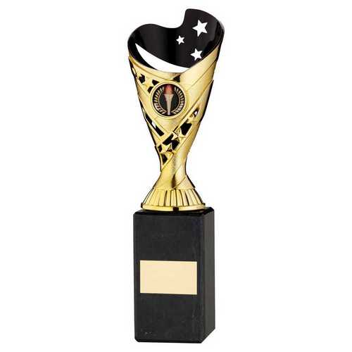 Gold|blk Plastic Sabre Cup On Blk Marble Assembled Trophy (1" Cen) - 10in