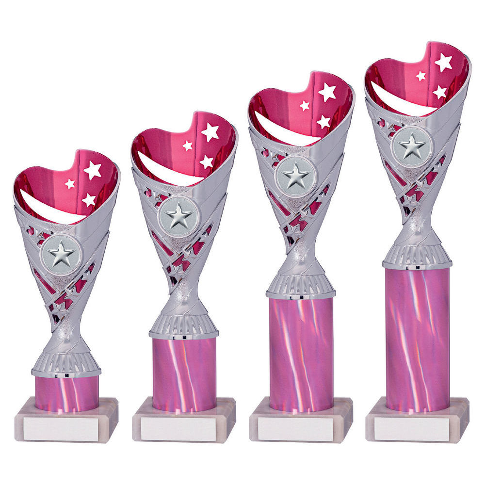 Pink|silver Plastic Sabre Cup Assembled On Marble (1in Cen) - 10in