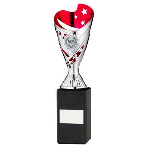 Silver|pink Plastic Sabre Cup On Blk Marble Assembled Trophy (1" Cen) - 8in