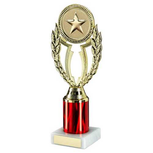 Gold|red Wreath Holder Assembled On Marble - (2" Cen|3" Tube) 9.75in