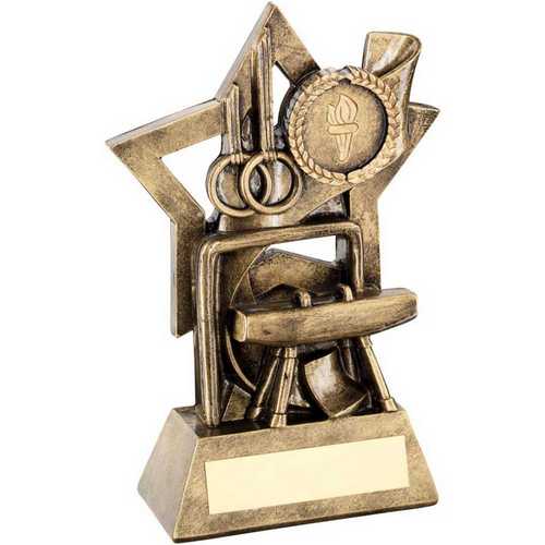Brz|gold Gymnastics On Star Backdrop With Plate (1in Centre) - 5.75in