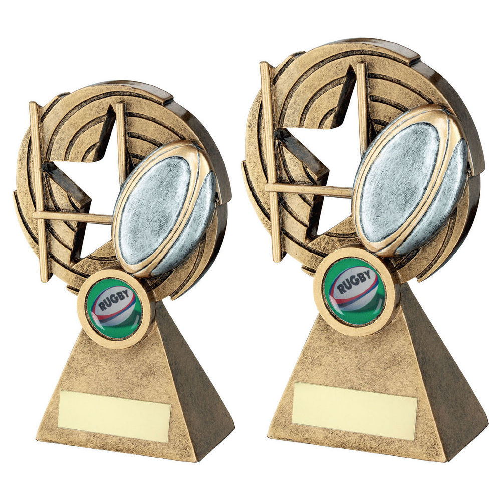 Brz|pew|gold Rugby Ball And Posts On Holed Spiral With Plate (1in Cen) - 7.25in