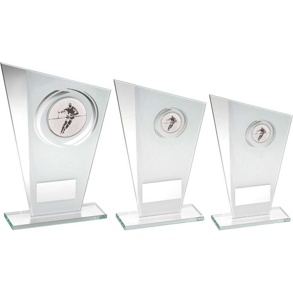 White|silver Printed Glass Plaque With Rugby Insert With Plate - 6.5in