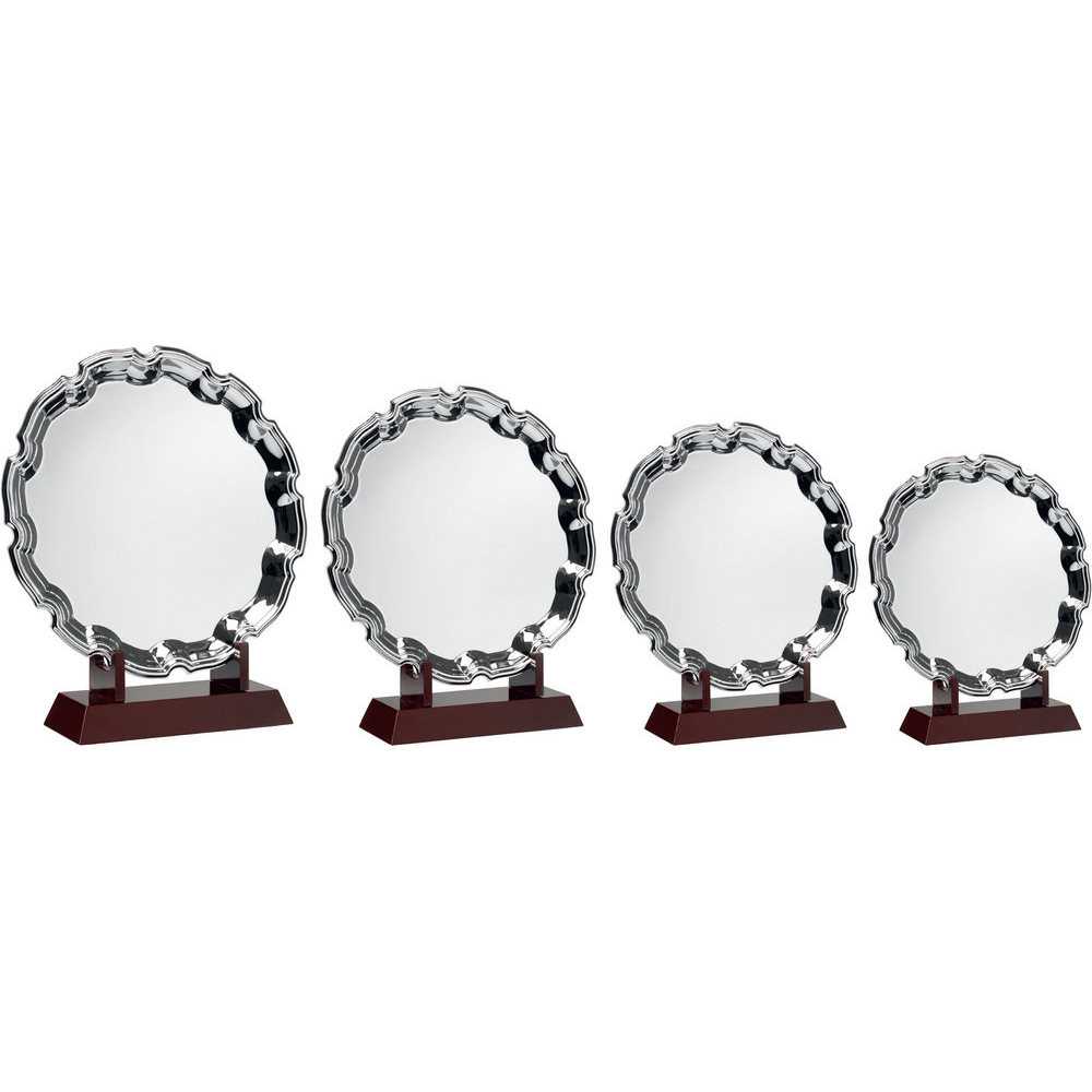 Silver Plated Chippendale Salver On Wooden Stand - (8" Salver) 9.5in