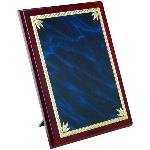 Rosewood Plaque With Blue|gold Aluminium Front - 6 X 8in