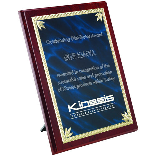 Rosewood Plaque With Blue|gold Aluminium Front - 4 X 6in