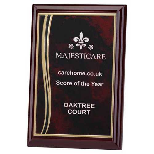 Rosewood Plaque With Red|gold Aluminium Front - 6 X 8in