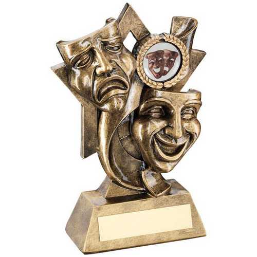 Brz|gold Drama Masks On Star Backdrop With Plate (1in Centre) - 5.75in