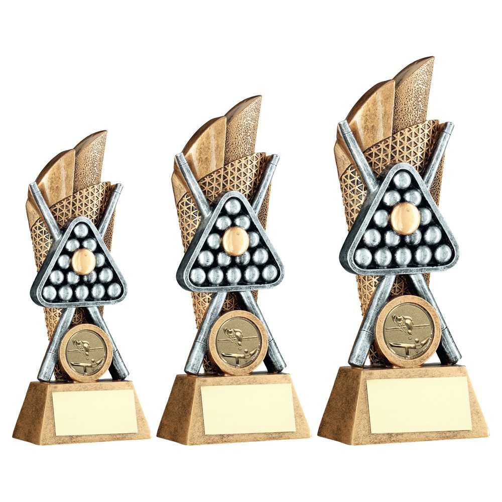 Brz|pew|gold Pool|snooker Cues & Balls On Backdrop With Plate (1in Cen) - 5in