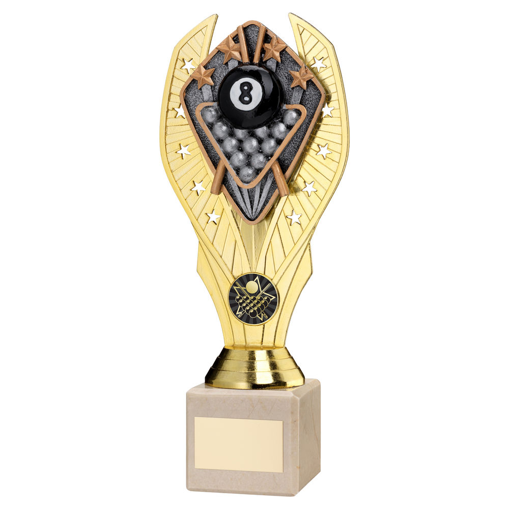 Gold Plastic Holder + Pool Disc On Cream Marble Trophy (1in Cen) - 7.75in