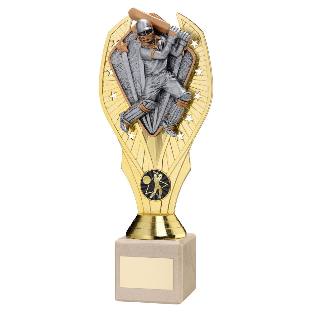 Gold Plastic Holder+cricket Batsman Disc+cream Marble Trophy (1in Cen) - 11in