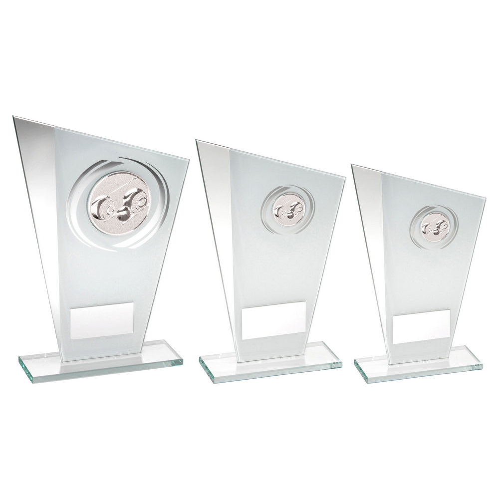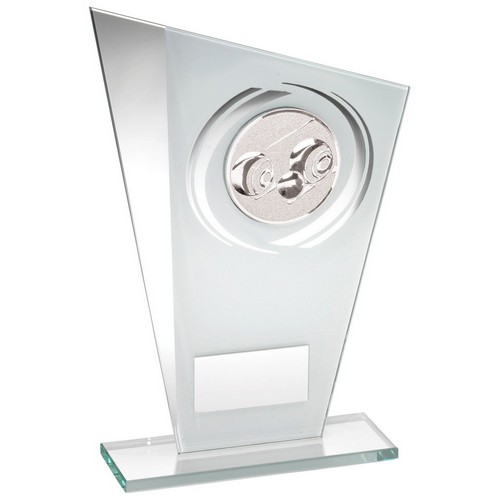 White|silver Printed Glass Plaque With Lawn Bowls Insert With Plate - 8in