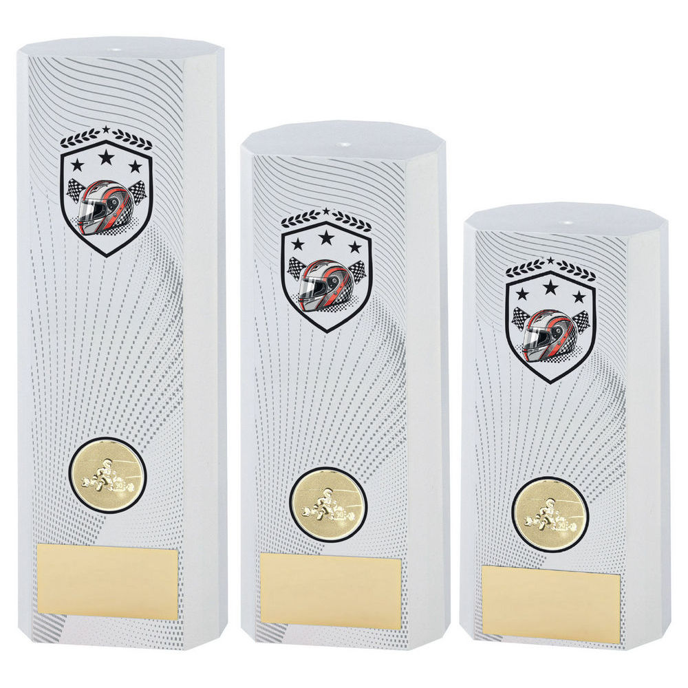 White Plastic Filled Column Motor Sport (1in Cen) - 8.25in