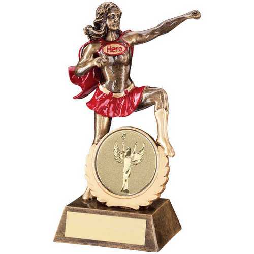 Brz|gold|red Generic Female Hero With Plate (2in Centre) - 7.5in