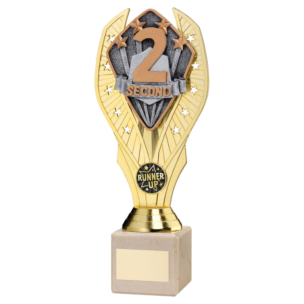 Gold Plastic Holder + Second Disc On Cream Marble Trophy (1in Cen) - 11in