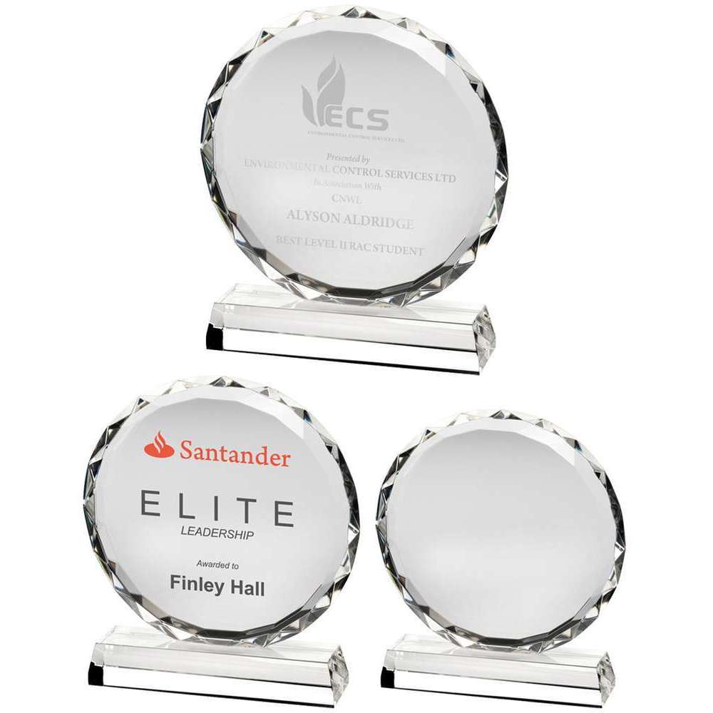 Clear Glass Circle With Faceted Edge On Base (25mm Thick) - 8in
