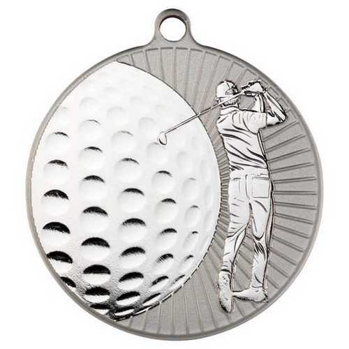 Large Golf Two Colour Medal Matt Silver|silver - 2.75in
