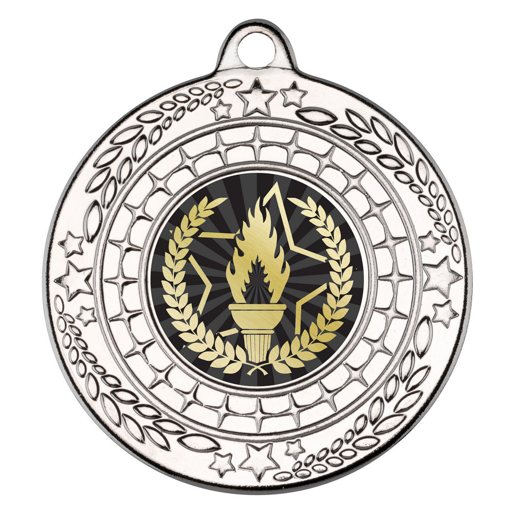 Stars And Leaf Medal (1in Centre) Silver - 2in