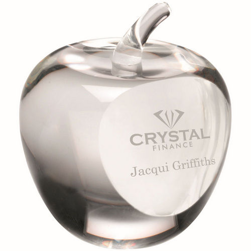 Clear Glass Apple Paperweight With Presentation Case - 3.5in