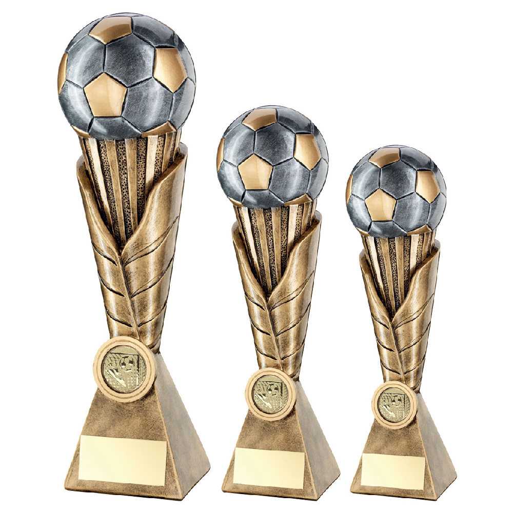 Brz|pew|gold Football On Leaf Burst Column (1in Centre) - 12in