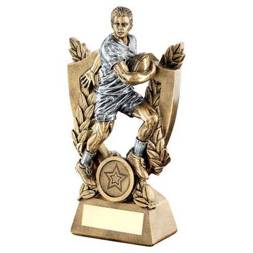 Xxx Brz|pew Male Rugby On Shield And Wreath (1in Centre) - 8in