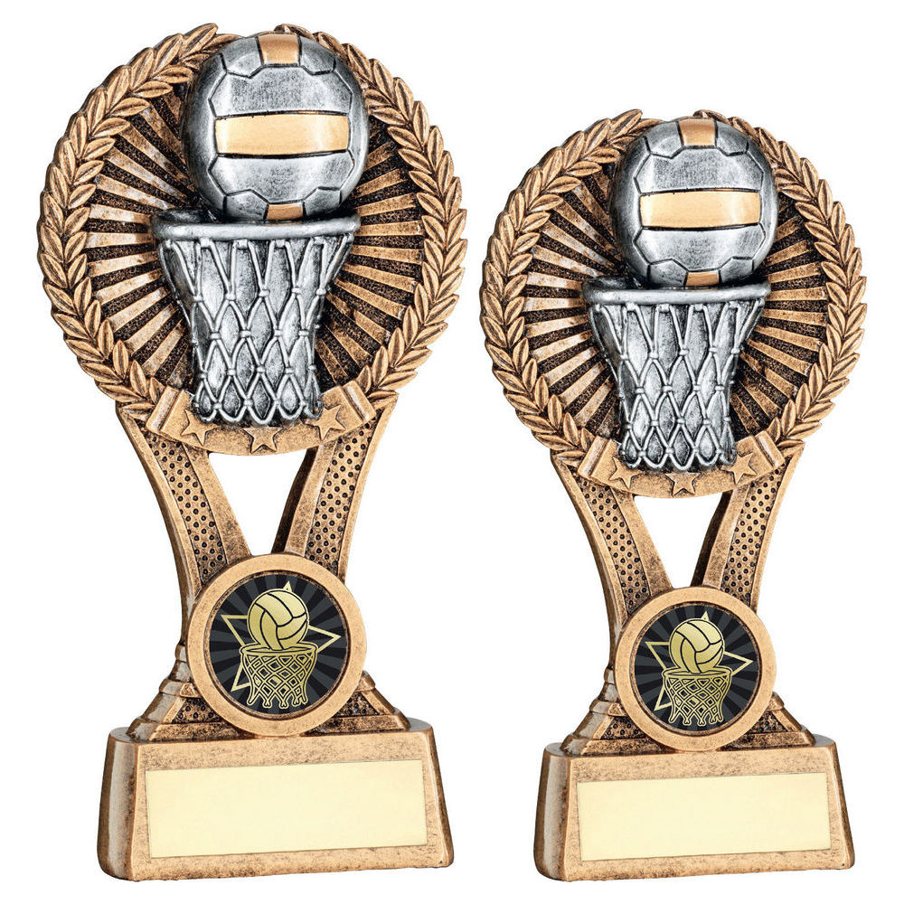 Brz|gold|pew Netball Round Wreath On V Riser (1in Cen) - 6in