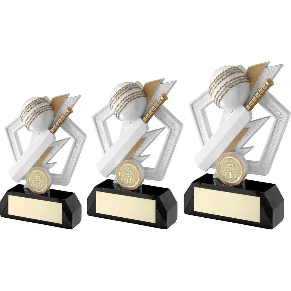 White|gold|black Cricket Bat And Ball On Flash Pentagon (1in Centre) - 7.75in