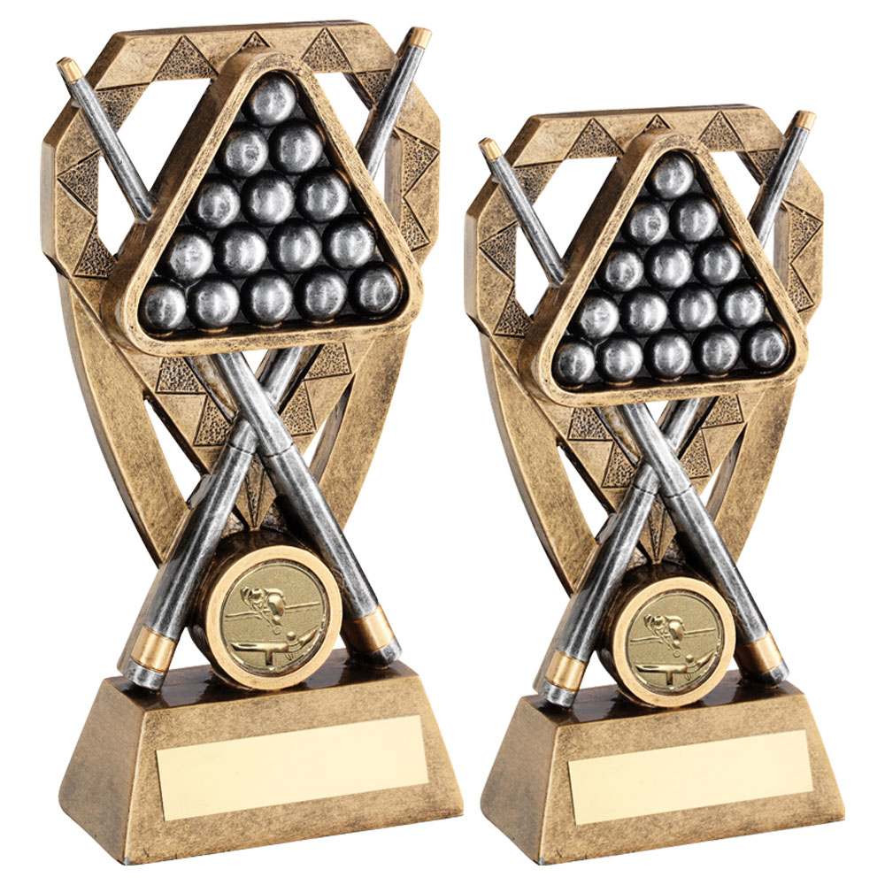 Xxx Brz|pew|gold Pool|snooker Balls With Cues On Diamond (1in Centre) - 7in