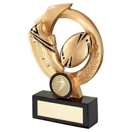 Gold|black Rugby Ball And Boot On Round Wreath (1in Centre) - 4.5in