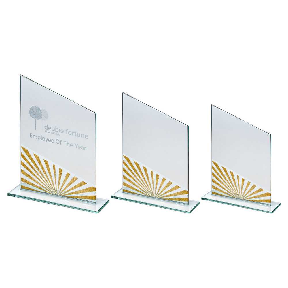 Jade Glass Angled Plaque With Gold|silver Glitter Detail (5mm Thick) - 6.5in