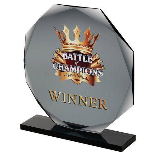 Smoked Black Glass Octagon Plaque (10mm Thick) - 6.75in
